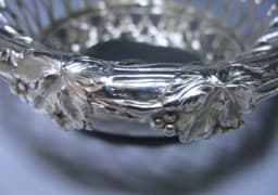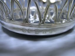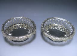 A fantastic pair of Scottish silver wine coasters. The sides of the coasters are pierced with an unusual trellis/basket weave design.