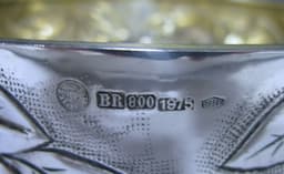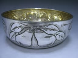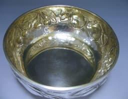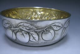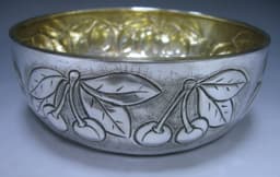 A delightful Italian 800 standard silver fruit bowl embossed with apples, cherries, pears and plums. The interior has pale gilding.