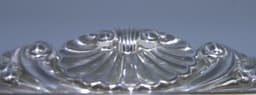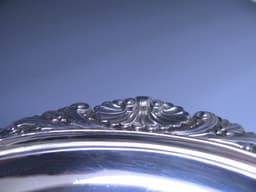 An antique silver rectangular two-handled tray with a beautiful gadroon and shell border.