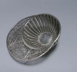 A fine and impressive George III caddy spoon modelled in the form of a jockey cap. The spoon is filigree work, the cap is ribbed lace work and the peak has a...