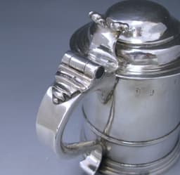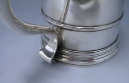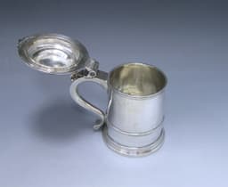 An antique silver George I tankard of plain tapering cylindrical form onto a spreading reeded base. This tankard is slightly smaller than normal and is often...