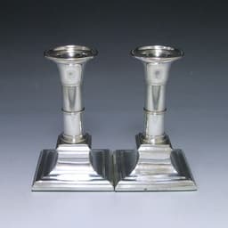 An attractive and rare pair of antique silver George III telescopic candlesticks. The sconces and square bases have a reeded edge and the height can be...